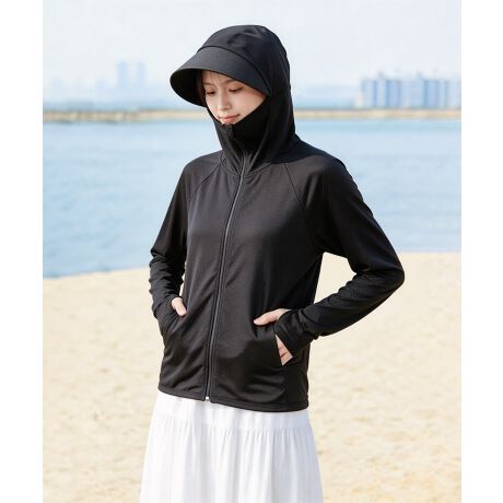 UV対策におすすめのフェイスカバー付きフードパーカー。
