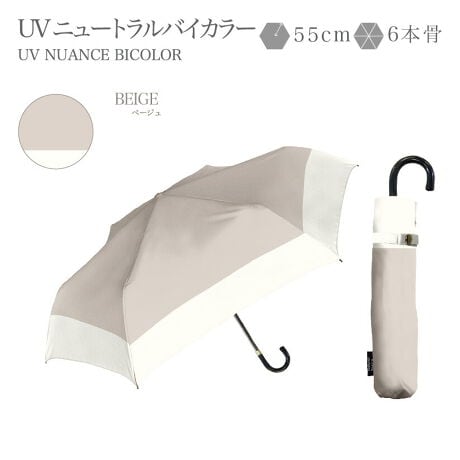 人気のバイカラーにニュアンスカラーが登場。柔らかい色合いが可愛いです。55cmの大きめサイズが日差しから肌を守ります。