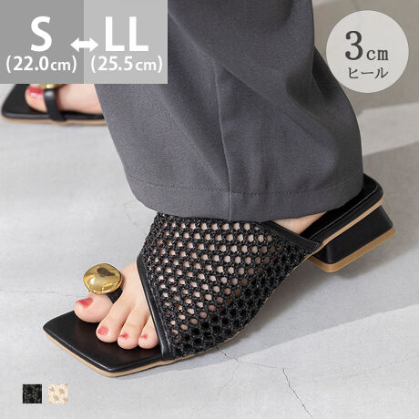 『3cmヒール メッシュ オーナメント トングサンダル』