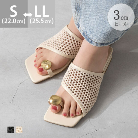 『3cmヒール メッシュ オーナメント トングサンダル』