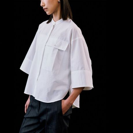 【ビッグポケットが映える。夏まで活躍するクロップドシャツ】