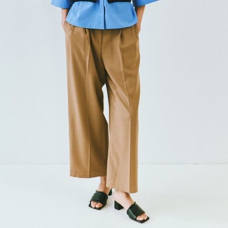 ヒップまわりにゆとりを持たせながら、脚をまっすぐきれいに見せる計算されたセミワイドシルエット。