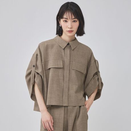 フラップポケットが程よくアクセントになった、ワークテイストを上品に取り入れたクロップド丈ブラウス。