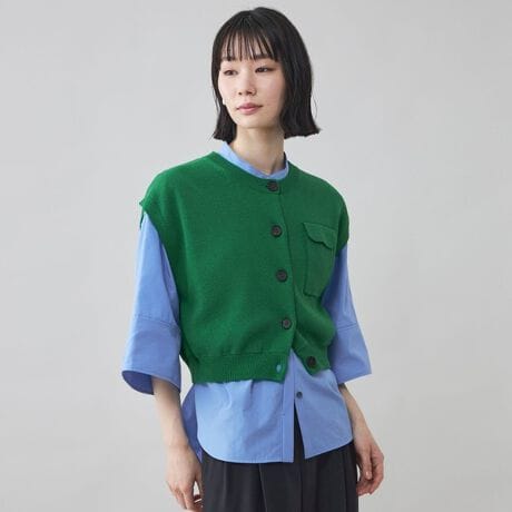 【ドライタッチで軽やか。春夏コーデを引き締めるクロップドニットジレ】