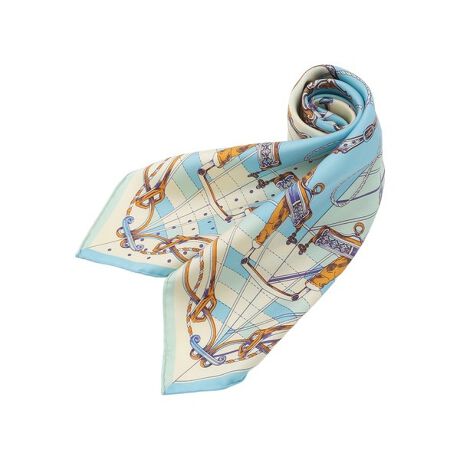 スカーフ柄定番モチーフの「ビット」を、気球に乗った時に内側から見える気毫の柄やワイヤロープ、カラビナ、ロードフレーム等で表現。