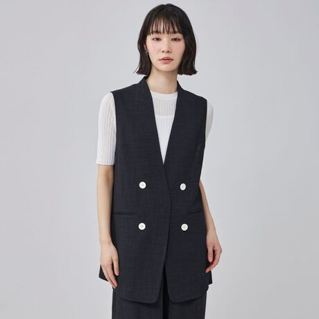比翼仕立てのフロントに、配色ボタンをさりげなく効かせたデザインが目を惹くジレ。Tシャツ・ブラウス・ワンピースなど、さまざまなアイテムに合わせるだけでコーディネートがこなれます。