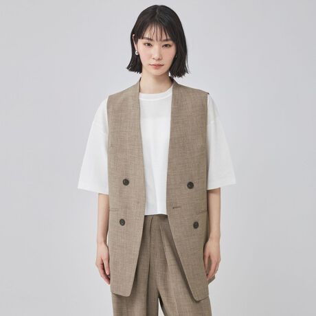 比翼仕立てのフロントに、配色ボタンをさりげなく効かせたデザインが目を惹くジレ。Tシャツ・ブラウス・ワンピースなど、さまざまなアイテムに合わせるだけでコーディネートがこなれます。