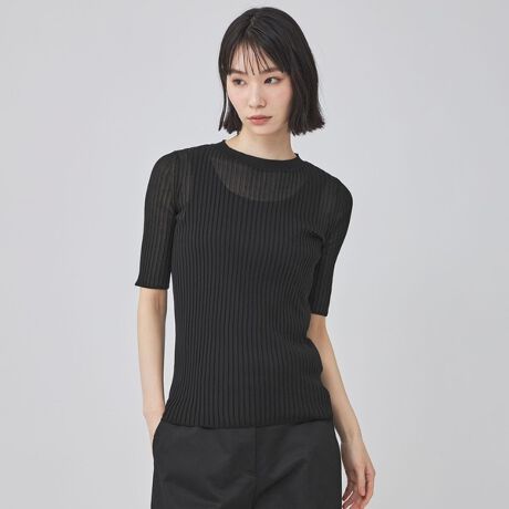 繊細なクルーネックで仕上げた、半袖のシアーニットプルオーバー。