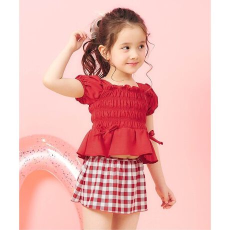 たっぷりのシャーリングがポイントのセパレート水着。