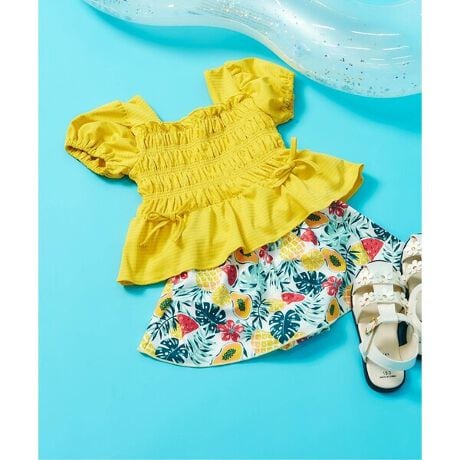 たっぷりのシャーリングがポイントのセパレート水着。