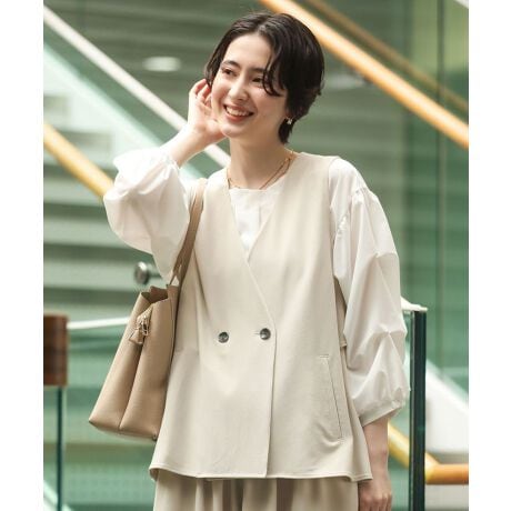 軽やかなフリルが映える、大人のレイヤードベスト