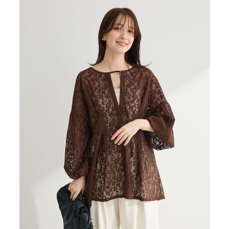 透け感レースが映える、大人の上品カジュアル繊細なメッシュレースがコーディネートに軽やかな表情を添えるプルオーバーです。やさしい透け感が女性らしい雰囲気を演出し、シンプルなスタイリングでも自然と華やかさをプラスしてくれます。フロントのタックデザインが立体感のあるシルエットを作り、ゆとりのあるフォルムで体のラインをさりげなくカバーします。袖口にかけてふんわり広がるシルエットも柔らかな印象を与え、上品なカジュアルスタイルを楽しめます。キャミソールやカットソーなどとレイヤードすることで、季節に合わせた着こなしができるのも魅力です。デニムやパンツでカジュアルにまとめたり、スカートと合わせてフェミニンに仕上げたりと、幅広いコーディネートに取り入れやすいアイテムです。軽やかな素材感でデイリーに活躍する一枚です。透け感[あり]