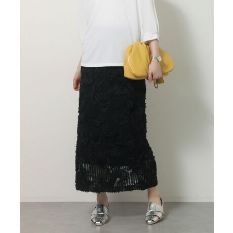 刺繍レースで魅せる上品ロングスカート。立体感のある刺繍をほどこしたレース素材が印象的なロング丈スカートです。繊細な透け感が軽やかさを演出し、歩くたびにやわらかな表情を生み出します。縦のラインを意識したデザインで、すっきりとしたシルエットを叶えながら女性らしさも引き立てます。ウエストはイージーな仕様で、ストレスの少ないはき心地です。Tシャツやニットと合わせたカジュアルコーデから、ブラウスと合わせたきれいめスタイルまで幅広く活躍します。季節を問わず着回しやすく、デイリーからお出かけまで対応できるレーススカートです。透け感[ややあり]