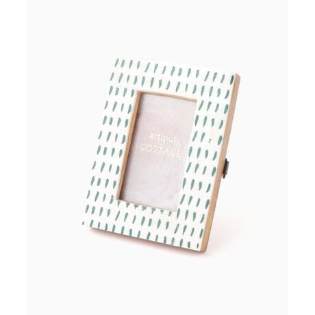 廃棄されてしまう水牛の骨を素材に使い、ハンドペイントで色付けしたミニフォトフレーム。