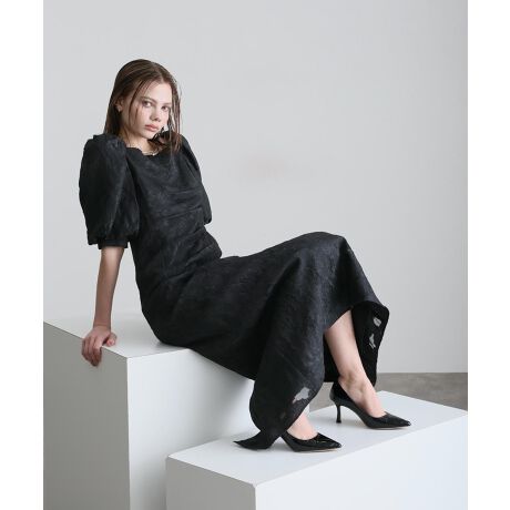 ニュアンス感のあるジャカード柄が上品に映えるロングワンピース