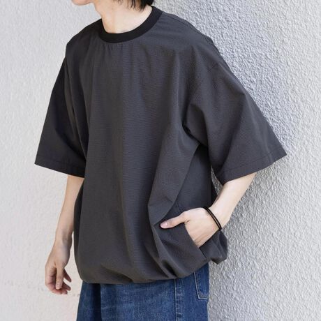 シアサッカー特特有の表面感のある生地がシンプルながらもトレンド感のあるTシャツ。