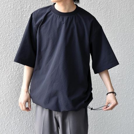 シアサッカー特特有の表面感のある生地がシンプルながらもトレンド感のあるTシャツ。