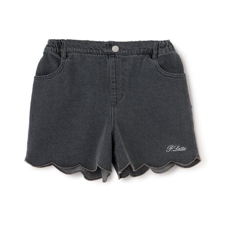 裾のスカラップデザインがガーリーで可愛いショートパンツです。ロゴ刺しゅうがさりげないワンポイント。ウエストはアジャスターつきのゴム仕様なので、サイズ感を調節できます。動きやすく学校でも着用可能な短すぎない丈感です。