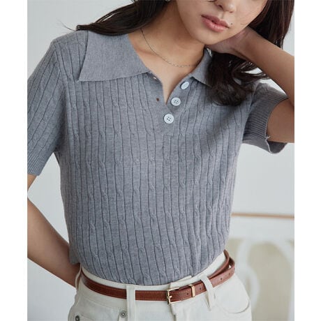 ケーブル編み半袖ポロニット [C7827]