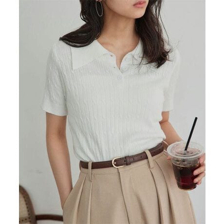 ケーブル編み半袖ポロニット [C7827]