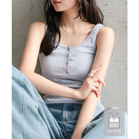 ヘンリーネックカップ付きタンクトップ [C7850]