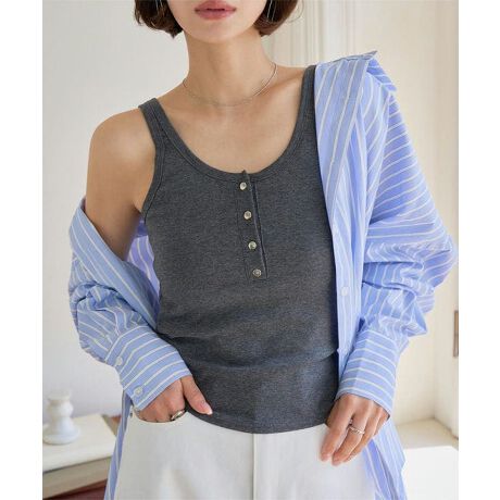 ヘンリーネックカップ付きタンクトップ [C7850]