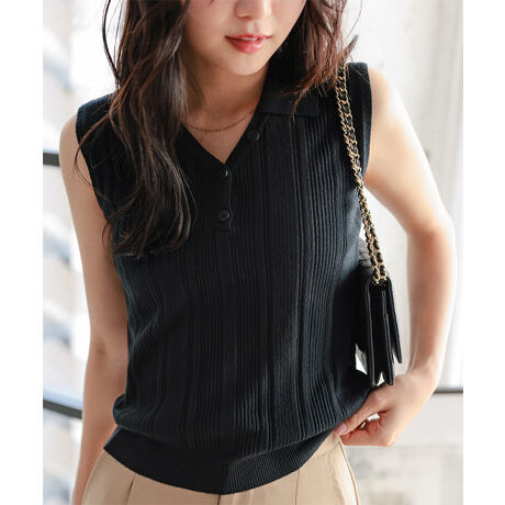 ノースリーブリブポロニット [N1343]