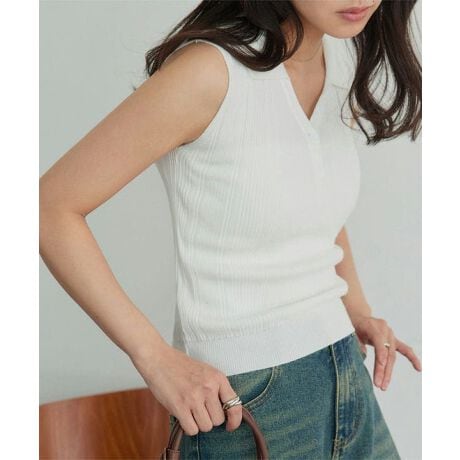 ノースリーブリブポロニット [N1343]