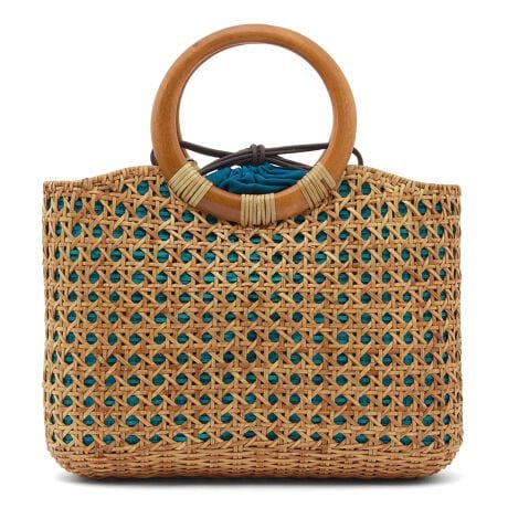涼しげに編まれた籐のかごバッグと巾着がセットとなった、かご巾着バッグです。