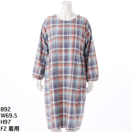 ツイルチェックギャザー使いワンピース