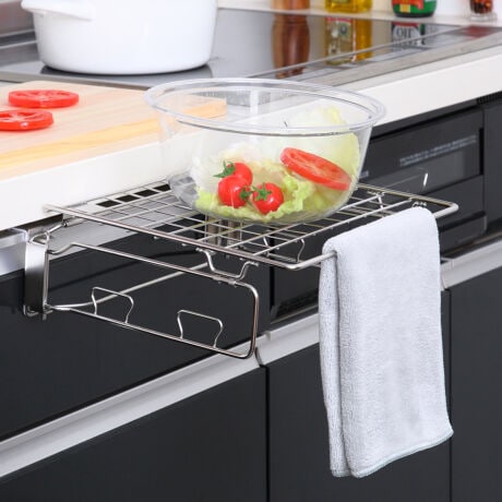 ●タオルやふきんが掛けられるバーと、ゴミ袋が掛けられるフックが付いています。