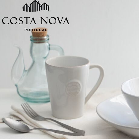 コスタ・ノバで一番人気の、ロゴ入りマグカップ。約360mlとたっぷり入り、持ち手も大きくて持ちやすいのがポイントです。のびのびとおおらかなシルエットに、コスタ・ノバのブランドロゴがワンポイントになって、置いてあるだけでもオシャレなマグカップ。カジュアルでリラックスしたい気分にぴったりです。男性、女性問わず使いやすいデザインなので、ギフトにもおすすめです。〈シリーズ〉海辺の自然やその表情の移ろいにインスパイアされて生まれたNOVAシリーズ。雲の白、海辺の砂の色、海の青など海辺の明るくリラックスした色と、のびのびしたシルエットが特徴的。ワンポイントで入ったポルトガルのコスタ・ノバの街並がモチーフのブランドロゴが憎らしいほどぴたりとはまった、さりげなくもしっかりかわいいデザイン。力の抜けたほどよいカジュアルさで、毎日の食事から特別な日の食卓まで、ふところ広く寄り添います。年齢・性別を選ばず楽しんで使っていただける定番シリーズです。コスタ・ノバのストーンウェア(?b器)は、デザインだけではなく、機能性にも優れています。電子レンジや食洗機にも対応し、気泡が少ないためお料理や食器を洗う水分がしみこみにくく、傷つきにい・割れにくいという特性を持っています。日常使いのお皿として、耐熱性や丈夫さを兼ね備えた使いやすさが大きな魅力です。〈注意事項〉手作業の工程が入ることで一つひとつ表情が異なるのが魅力の商品です。釉薬のかかり方の違い、模様・色味の違い、表面の細かい傷・黒点・ピンホール等がみられることがございます。