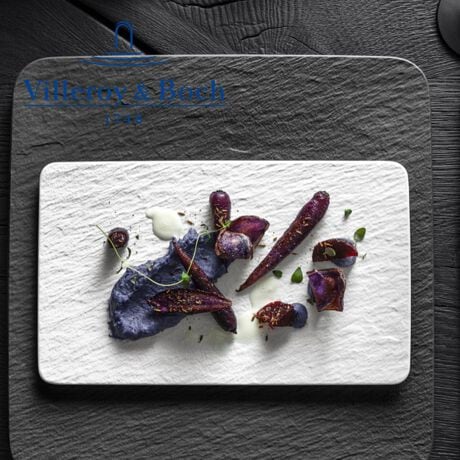 ロックブランはとても特別なシリーズです。特別な素材、釉薬を使いながらもマットに仕上げた表面、そして白でありながら表情豊かな仕上げが象徴的で、トレンドのスレートのような見た目と感触が卓越した逸品に昇華させています。洋食器は丸くなくてはならないという概念を覆した一枚で、ロックやロックブランはあらゆる角度から型破りなアイディアを実現しています。長方形でフラットな一枚は、オードブルやおつまみ、焼き魚などのメインディッシュ、デザートまで、料理を引き立ておいしそうに見せてくれる優れものです。贈り物としても人気です。
