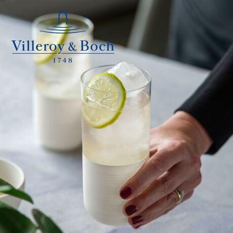 ロックブランのグラスコレクションは、高級クリスタル ガラスに美しいマット ホワイト仕上げを施した洗練されたデザインが印象的です。このコレクションは、ロックとロックブランの食器のどちらとも調和します。ホワイト部分の触り心地の良さと現在のトレンドである明るい色合いを魅力的に組み合わせています。シンプルなストレートデザインと、クリアなガラスとマットブラックのコントラストが、エレガントでクールな印象を与えます。