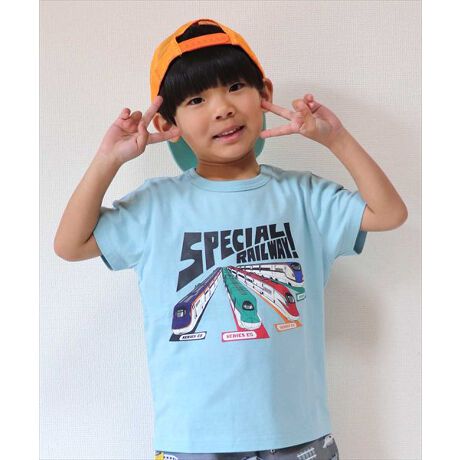 [型番:21343001]大人気の新幹線がプリントされた、綿100%で通気性のよい天竺の半袖Tシャツです。サイズはベビーサイズからキッズサイズまで取り揃えており、ベビーサイズは肩開き仕様です。