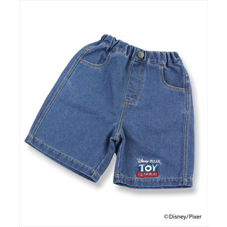 [型番:24343955]【綿100%】『トイ・ストーリー』でおなじみのロゴとキャラクターのデニム5分パンツが登場!ユニセックスで着用できるデザインです!きょうだいやお友だちとリンクコーデも楽しもう♪