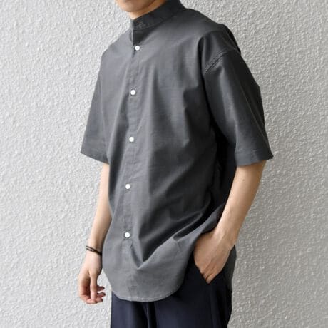 シンプルなバンドカラーを採用した、洗練された雰囲気の半袖シャツ。