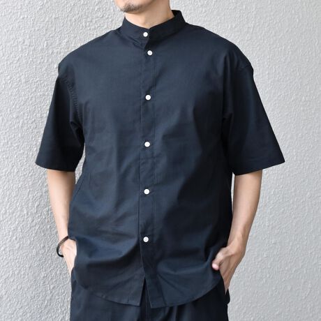 シンプルなバンドカラーを採用した、洗練された雰囲気の半袖シャツ。