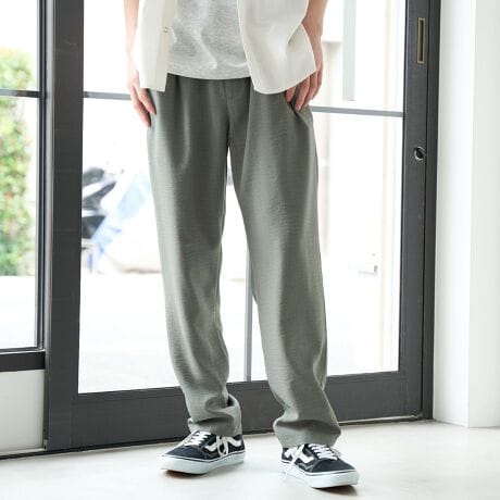 〇1タック入りで腰まわりにほどよいゆとりを持たせた、テーパードシルエット。リラックス感がありながら、すっきりとした印象に