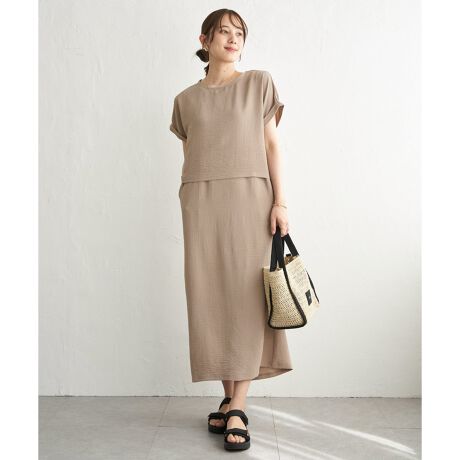 ノースリーブワンピースにショート丈トップスを組み合わせた、3WAYで楽しめるセットアイテム。