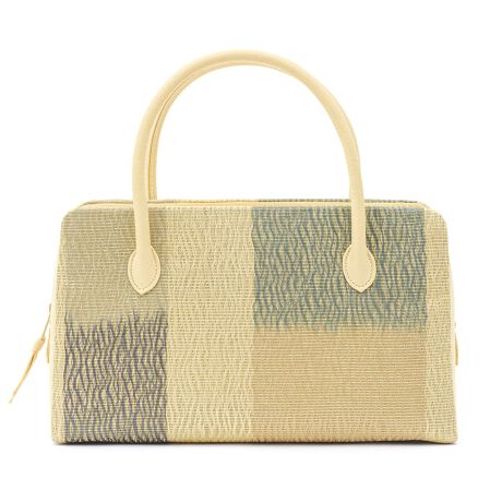 カジュアルな着物におすすめな、女性用「紗織」「白梅」「西陣織」の利休バッグです。