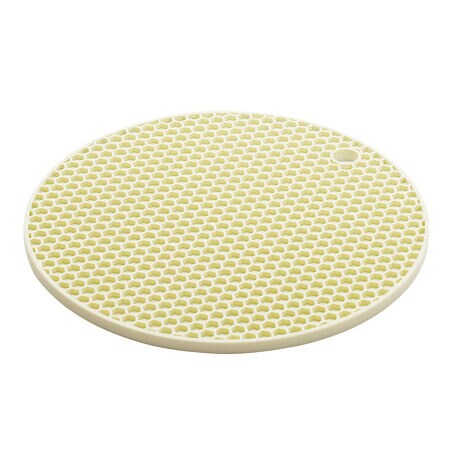 [型番:474109]【デザイン】●シリコン製で滑りにくい鍋敷きです。●鍋敷きとしてはもちろん、鍋つかみや瓶のフタ開けにも使えます。●鍋敷きは水で洗うことができるので、お手入れが簡単です。●フックに掛けられる穴付きで、場所を取らずに収納できます。【スペック】サイズ/直径:約18cm厚さ:約0.5cm内容量/1枚材質/シリコーンゴム耐熱温度/230度