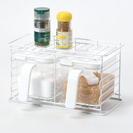 ●調味料をスッキリと収納できる、調味料ストッカー2個と専用ラックのセットです。
