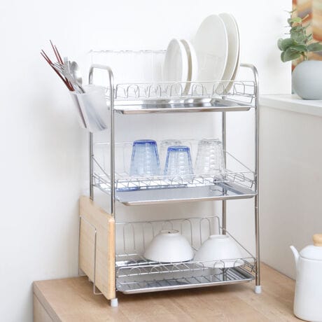 ●縦置き・横置きどちらでも設置ができる3段水切りバスケットです。