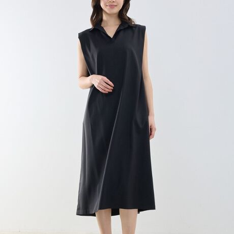 すっきりとした印象のスキッパーネックが魅力的なワンピース。袖回りは二の腕に生地が被るようにデザインされており、程よく上品な印象を与えます。膝が隠れる程度のミディ丈のシルエットがポイント。ウエストベルトでアクセントをつけるのはもちろん、ベルトをつけずにリラックスしたスタイリングもおすすめ。夏のお出かけスタイルに重宝するアイテムです。