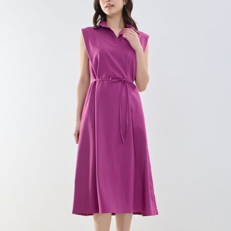 すっきりとした印象のスキッパーネックが魅力的なワンピース。袖回りは二の腕に生地が被るようにデザインされており、程よく上品な印象を与えます。膝が隠れる程度のミディ丈のシルエットがポイント。ウエストベルトでアクセントをつけるのはもちろん、ベルトをつけずにリラックスしたスタイリングもおすすめ。夏のお出かけスタイルに重宝するアイテムです。