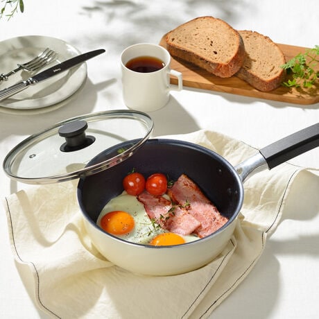 ●調理中に中身が確認できて便利なガラス蓋が付いています。