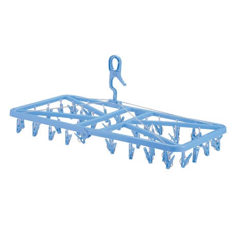 [型番:478179]【デザイン】●洗濯物がたっぷり干せる角ハンガー42ピンチ付きです。●竿にしっかり固定できるキャッチ式グリップで、外干しの際も安心です。●開閉がしやすく、2つに折りたたんでコンパクトに収納できます。【スペック】サイズ/約幅76×奥行37.5×高さ33cm折りたたみ時:約幅95×奥行37.5×高さ59.5cm重量/約570g内容量/1個材質/ポリプロピレン、ワイヤー:塩化ビニル被膜鉄線バネ:鋼線(亜鉛めっき) 生産国/中国製