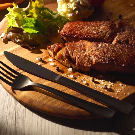 [型番:478641]【デザイン】●丈夫でサビにくい燕三条製ステンレスナイフです。●耐久性、耐食性に優れた黒酸化発色を施したマット調の落ち着いたブラックカトラリーです。●シンプルでモダンなワンランク上のカトラリーとして、ご来客時のおもてなし用から普段使いまで幅広くご使用いただけます。 【スペック】サイズ/約幅1.8×奥行20.5×高さ0.5cm重量/約60g内容量/1本材質/ステンレス生産国/日本製食器洗い乾燥機/使用不可