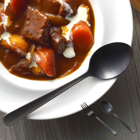 ●耐久性、耐食性に優れた黒酸化発色を施したマット調の落ち着いたブラックカトラリーです。